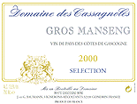 Le Floc de Gascogne blanc du domaine de Cassagnoles est un vin de liqueur AOC, issu du mariage subtil du jus de raisin de colombard et Gros manseng associé à l'armagnac du domaine ; C'est un produit authentique et entièrement naturel. Après une lente maturation en tonneaux de chêne, le Floc de Gascogne acquiert une saveur inégalée, faite d'harmonie et d'élégance. Il faut absolument l'essayer, il recèle des trésors gastronomiques : en apéritif, avec du melon, du foie gras, dans vos desserts et en préparations culinaires, il valorise toujours le produit auquel il est associé. A découvrir aussi, son homologue Floc de Gascogne rouge qui reçoit, cette année, le coup de cœur du Guide Hachette 2002.